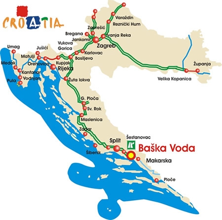 Baška Voda se na karti Dalmacije nalazi u središnjem dijelu, 50 km jugoistočno od Splita i 170 km sjeverozapadno od Dubrovnika